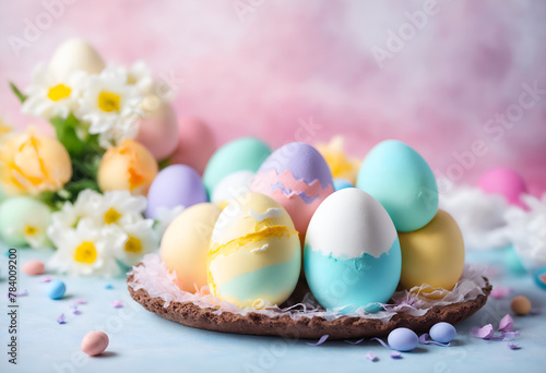 Obraz premium Easter pastel colored eggs