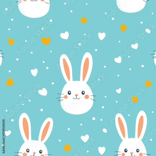 © Nattapat, Obraz premium Easter pattern, Easter background, bunny seamless pattern, vector style simple color
