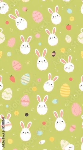 © Asawin, Obraz premium easter pattern with eggs and rabbit on light green background