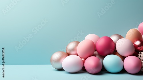 Fototapeta premium Easter quail eggs of various pastel shades with designs and patterns, laid on...