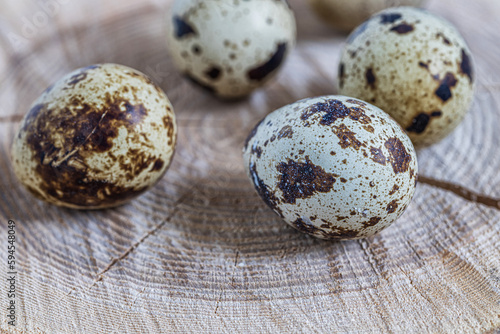 Fototapeta premium Easter quail eggs. Spring background with small easter quail eggs. Vintage...