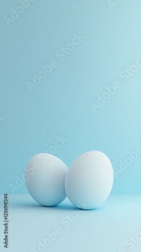 © Svitlana, Fototapeta premium Easter Sky Blue 3d background minimalistic mockup with space for text