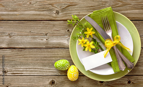 © Alexander Raths, Fototapeta premium Easter table setting with daffodil and cutlery