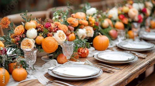 © LI, Naklejka premium easter table setting with flowers
