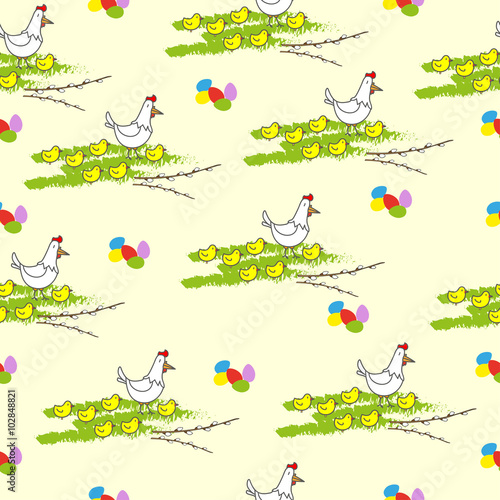 © irenlukas, Naklejka premium Easter vector seamless color pattern on yellow background