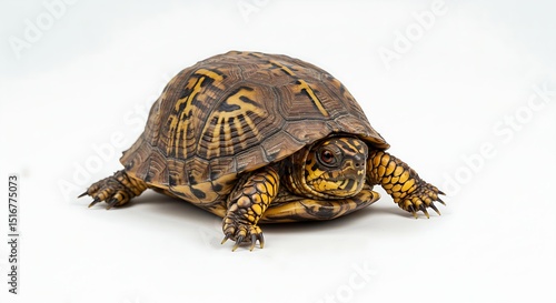 Fototapeta premium Eastern Box Turtle Isolated on White Background Depicting Longevity Patience and Wisdom Ideal for Educational Material and Nature Conservation Projects Stock Photo