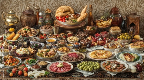© AmStock, Fototapeta premium Eastern Breakfast Foods in Seasonal Colors and Artistic Setting