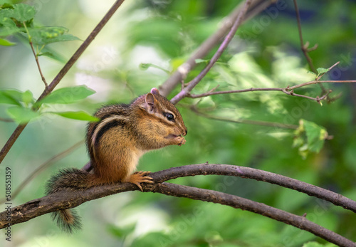 © ellenmck, Obraz premium Eastern Chipmunk eating a nut a tree in Central Park, New York City