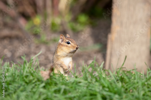 Fototapeta premium Eastern chipmunk with cheeks full of seeds