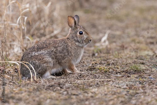 Fototapeta premium eastern cottontail bunny in early spring