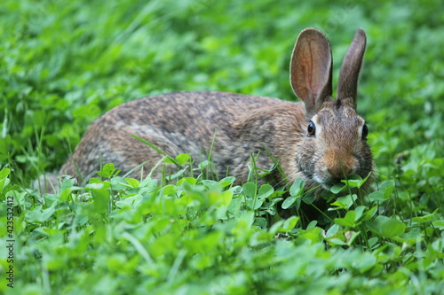 Fototapeta premium Eastern Cottontail Rabbit eating Clover