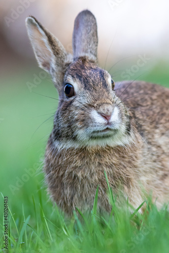 © rabbitti, Fototapeta premium Eastern Cottontail Rabbit portrait in grass