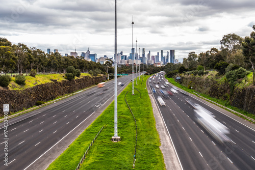 Naklejka premium Eastern Freeway overpass overlooking Melbourne CBD City
