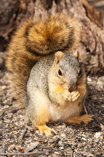 © mtruchon, Fototapeta premium eastern gray squirrel in front of a stump