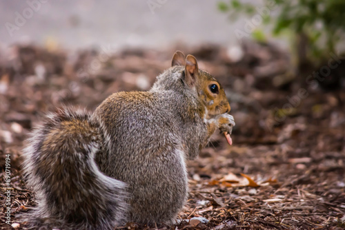 Fototapeta premium Eastern gray squirrel (Sciurus carolinensis) eating dinner