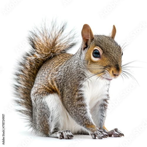 Obraz premium Eastern Gray Squirrel sitting in natural pose isolated on white background, photo realistic