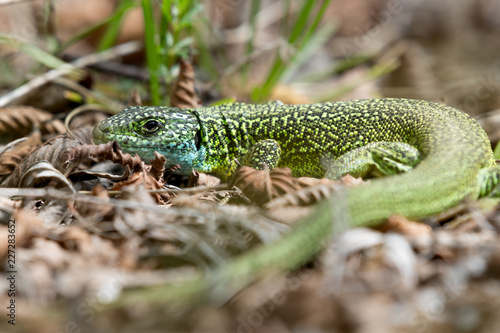 Fototapeta premium Eastern green lizard (Lacerta viridis) in Slovenia