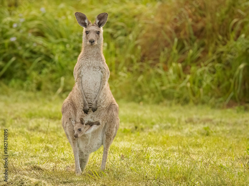 © alec, Fototapeta premium Eastern Grey Kangaroo, Macropus giganteus, with Joey in pouch,