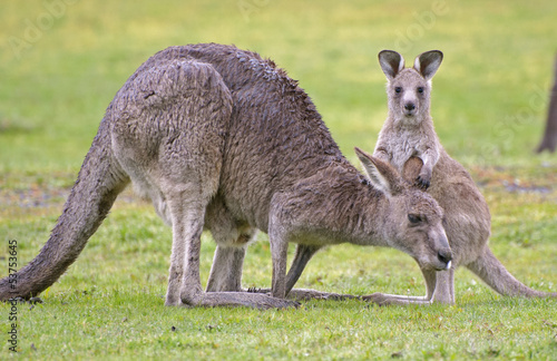 © 169169, Fototapeta premium eastern grey kangaroos with joey