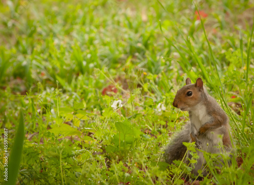 © Kevin E Beasley, Fototapeta premium Eastern Grey Squirrel (Sciurus carolinensis) Scavenging in the Grass
