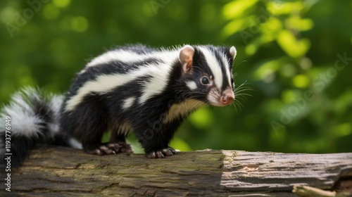 © Oleksandr, Obraz premium Eastern Spotted Skunk (Spilogale putorius) in Natural Setting. Crepuscular Mammal with Distinct Tail Spotted Pattern Outdoors