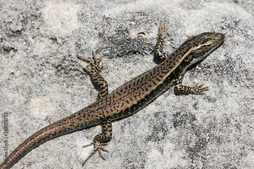 Fototapeta premium Eastern Water Skink basking on sandstone rock