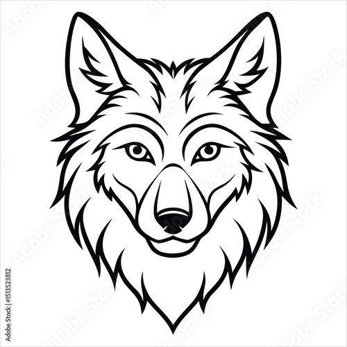© SP Technology, Fototapeta premium Eastern wolf head line art graphic isolated on white background