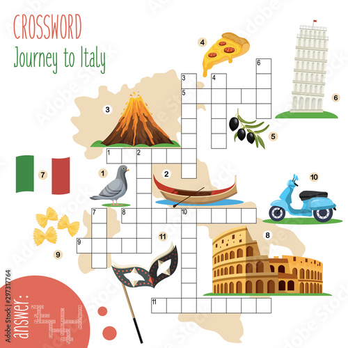 Fototapeta premium Easy crossword puzzle 'Journey to Italy', for children in elementary and...