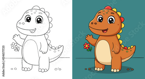 © mrvect02, Obraz premium Easy Cute Dinosaur Cartoon Coloring Book Page For Kids