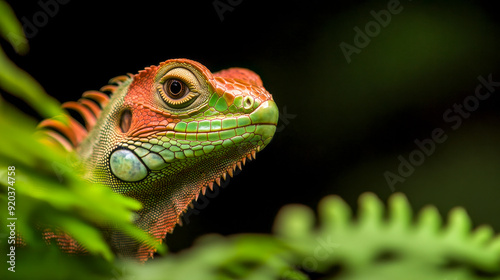 © NORN, Obraz premium Easy-to-Understand Sentence for Naming the Image: Green Iguana Resting on a Tree Branch in Tropical Wildlife