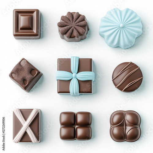 Obraz premium 3月14日, ホワイトデー, チョコレート, チョコ, キャンデー, 食べ物, 甘い, デザート, 白, 孤立した, プラリーヌ, チョコ, 茶色,...