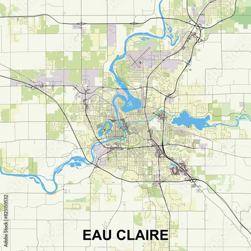 Obraz premium Eau Claire, Wisconsin, United States map poster art
