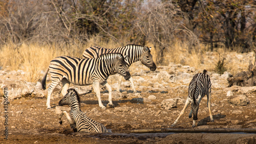 Naklejka premium ebras near a water hole, Etosha national park, Namibia