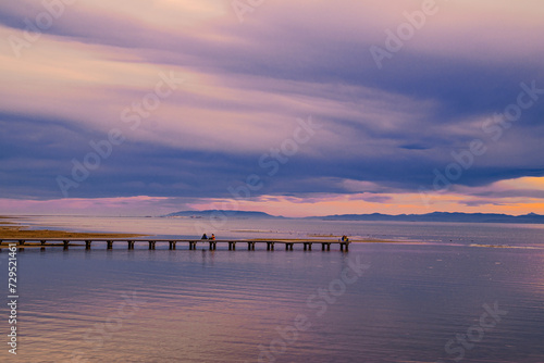 © JuanFelix, Fototapeta premium Ebro Delta, seen from Trabucador beach, with the footbridge in the background on a cloudy day