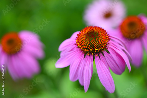 © nmelnychuk, Obraz premium Echinacea flowers (Echinacea purpurea) against green background