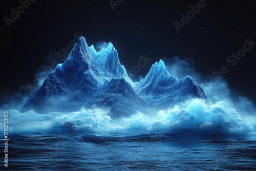 Naklejka premium Echoes of Blue Fire Along Mountain Curves