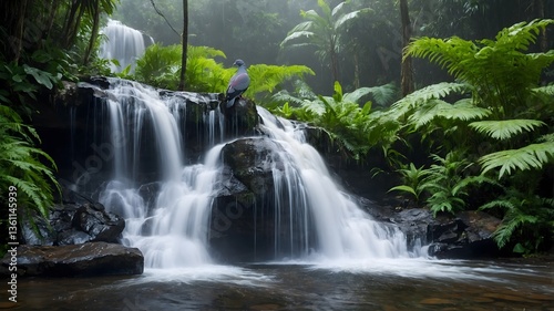 © Chamika, Obraz premium Echoes of Peace: The Sri Lanka Wood Pigeon by a Cascading Stream