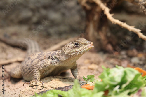 © Stefan Hummel, Naklejka premium Echse bei der Fütterung