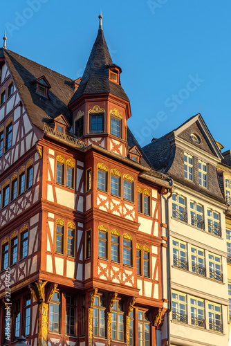 © helmutvogler, Fototapeta premium Eckhaus Großer Engel der Ostzeile auf dem Römerberg in Frankfurt am Main