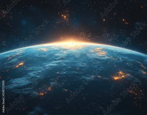 Obraz premium Eclipse in Blue Light Over a Cosmic Horizon