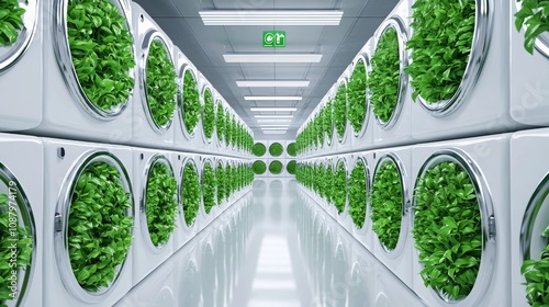 Fototapeta premium Eco-conscious hostel laundry, energy-saving machines, eco-wash posters