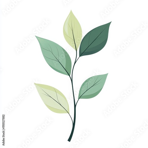 Fototapeta premium eco conscious leaf design, gentle curved stems, fresh spring green tones, botanical minimalism, smooth organic shapes, environmental art, harmonious plant illustration, modern vector style, clean