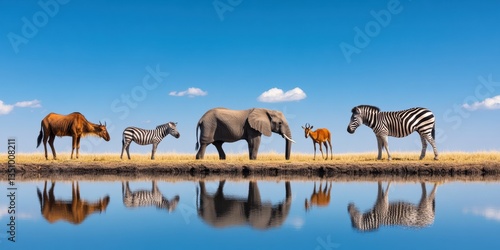 © Ryzhkov, Fototapeta premium Eco-Conscious Wildlife Conservation Symmetrical African Savanna Ecosystem Panorama - Sustainable Biodiversity Storytelling for Global Environmental Education