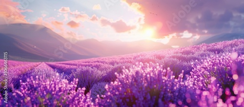 Naklejka premium Eco farming of lavender under the summer sun creating a serene lavender landscape with copy space image