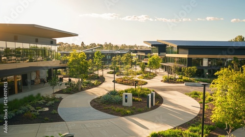 Fototapeta premium Eco-Friendly Business Complex in a Scenic Urban Environment