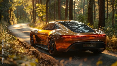 Fototapeta premium Eco-friendly car with solar panels symbolizing sustainable transportation....