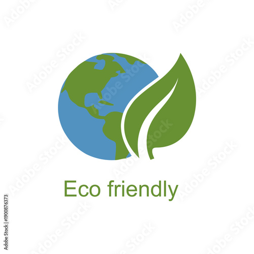 Obraz premium Eco Friendly Earth Icon with Green Leaf – Sustainable Environment and...