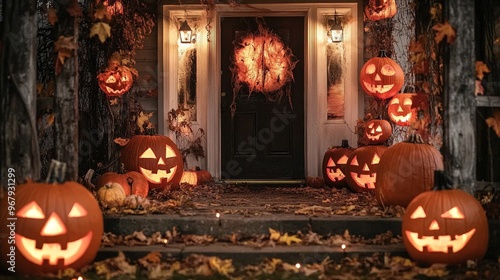 © Naknakhone, Obraz premium Eco-friendly Halloween decorations made from recycled materials.