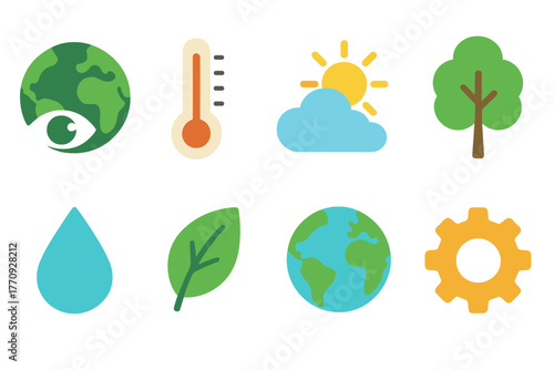 © Hubba Bubba, Fototapeta premium Eco-friendly, nature icon set. Flat environment, sustainability icons collection