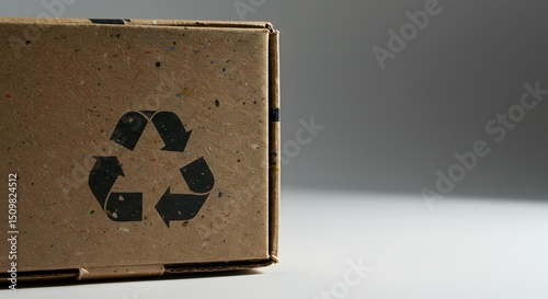 © Bhagya, Obraz premium Eco-Friendly Packaging Sustainable Cardboard Box with Recycling Symbol - Promoting Green Initiatives and Responsible Consumption